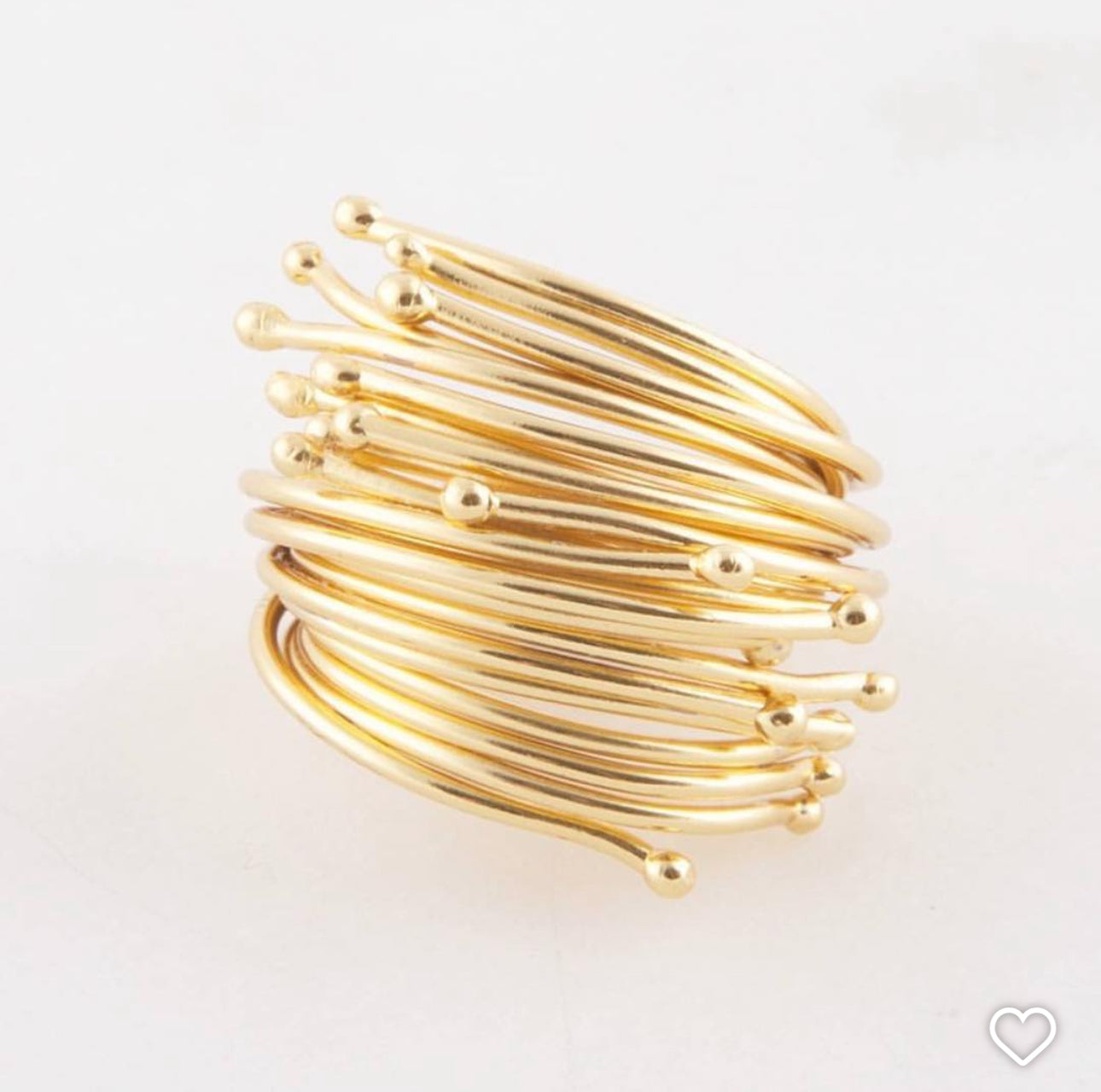 This stunning design adds to any outfit. Dress Up or wear it every day to make a statement. This ring is made of 24 k. gold plated over brass. Handmade in Colombia