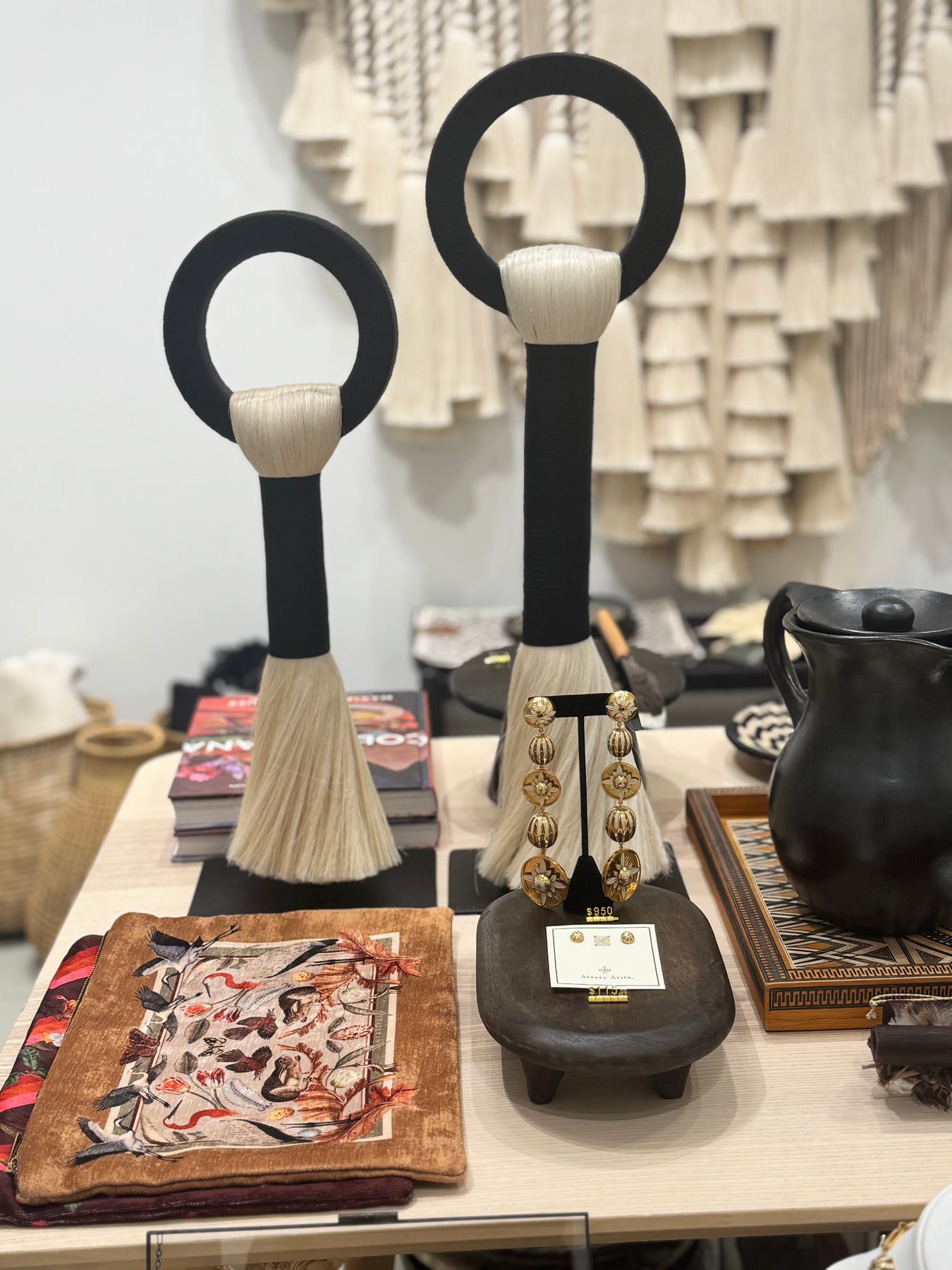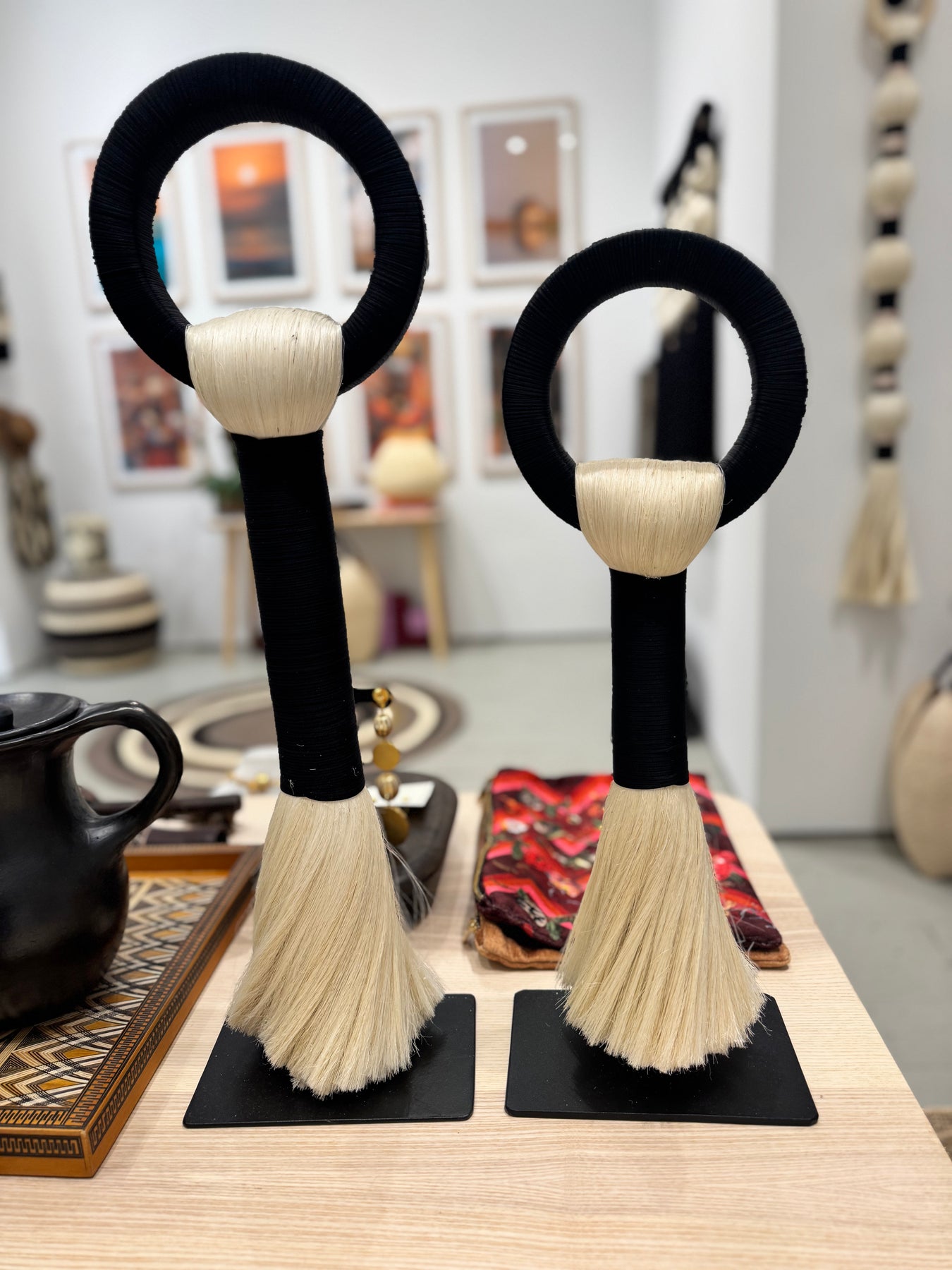 Stunning sculptural centrepiece crafted from exquisite fique palm. Made by a design group and artisans from Santander Colombia. This modern design not only elevates your space but also adds a touch of natural beauty. Perfect for a console or coffee table. Customise the textile wrapped fabric. In the picture is White Fique with Black textile. 6-8 Week lead time.
