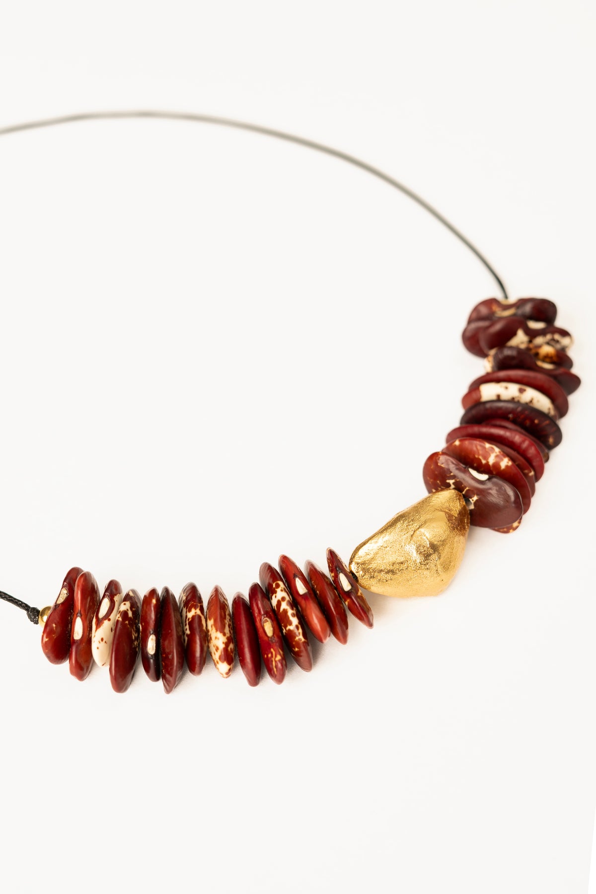 This handcrafted necklace celebrates the symbolic power of natural abundance, featuring authentic high-mountain beans sourced directly from seed custodians across Colombia's diverse regions.